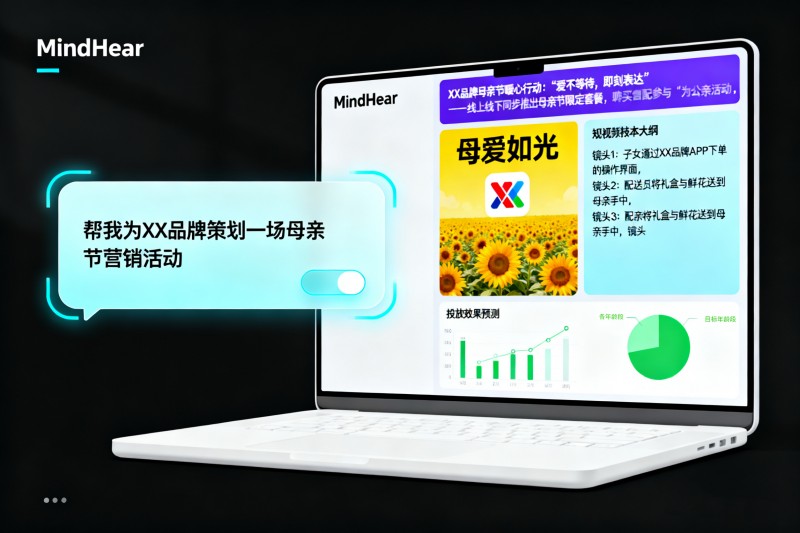 基于如此强大的技术基座,暨岳国际顺理成章地打造出了其旗舰应用产品MindHear。这并非一个简单的工具,而是被誉为“装在口袋里的AI营销超级大脑”。MindHear的革命性在于,它彻底改变了品牌与营销系统的交互方式。与市面上多数功能单一的点状AI工具不同,它致力于提供端到端的全链路智能解决方案。