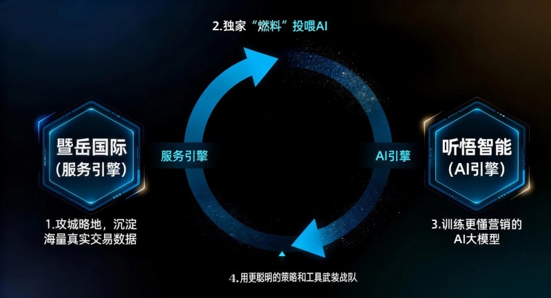 暨岳国际的生态核心,在于其独创的“暨岳国际”服务引擎与“听悟智能”AI引擎并行驱动的战略。这并非两个独立业务的简单相加,而是一个精密设计的、相互赋能的增长飞轮。